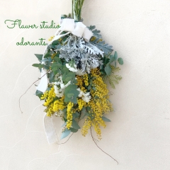 たっぷりミモザを使って❗️ミモザリース。