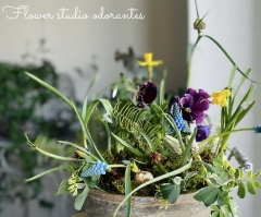 季節のお花コースの球根アレンジ最終日。