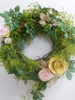 今日のレッスンでは、ナチュラルなイメージのリースの壁飾り。
