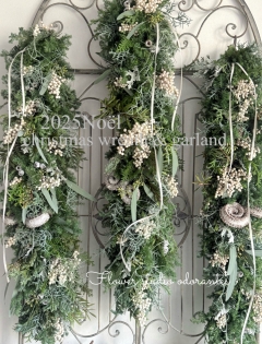 ホワイトクリスマスリースアンドガーランドのフラワーlesson。