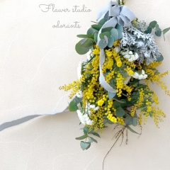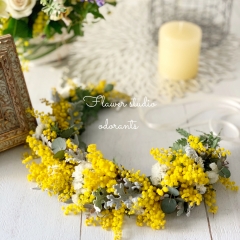 たっぷりミモザを使って❗️ミモザリース。
