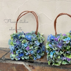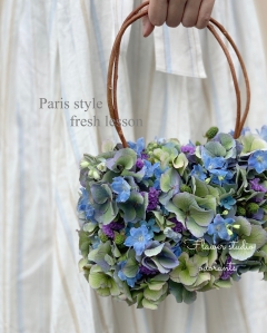 フレッシュフラワーの秋色紫陽花を使ってバックブーケのフラワーLesson。